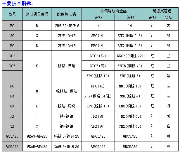 熱電偶補償導線:GB/T4989-94