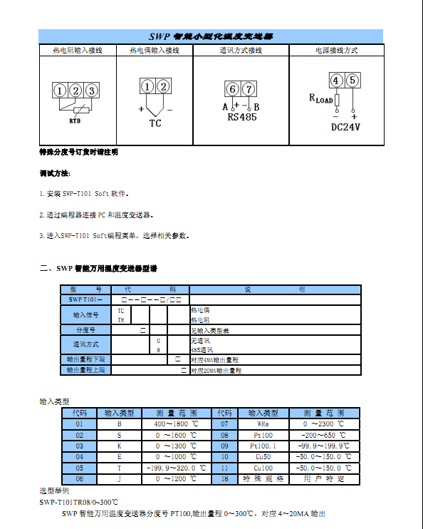 SWP-T101 智能萬用溫度變送器特點: